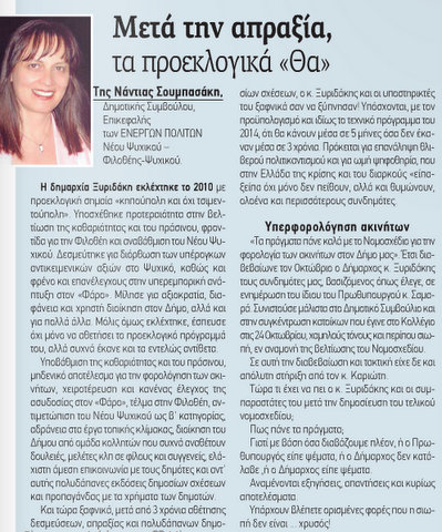 Δημοσιεύθηκε στην μηνιαία τοπική εφημερίδα Φιλοθέης-Ψυχικού, Χαλανδρίου, Παπάγου-Χολαργού, Πεντέλης «ΘΟΡΥΒΟΣ», τεύχος Δεκεμβρίου 2013