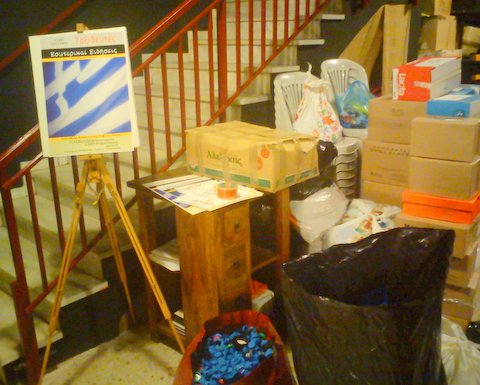 Την Κυριακή 9/2/2014 τα μέλη του δικτύου αλληλεγγύης ΕΝΕΡΓΩΝ ΠΟΛΙΤΩΝ Νέου Ψυχικού-Φιλοθέης-Ψυχικού Γιώργος Τσαγκανέλιας και Ντίνα Πάντα παρέδωσαν στην πολιτιστική ομάδα «Ταξιδευτές» καπάκια από πλαστικά μπουκάλια με σκοπό την ενίσχυση της πρωτοβουλίας «ΣΥΓΚΕΝΤΡΩΝΟΥΜΕ & ΑΝΑΚΥΚΛΩΝΟΥΜΕ ΓΙΑ ΤΗΝ ΦΛΟΓΑ».