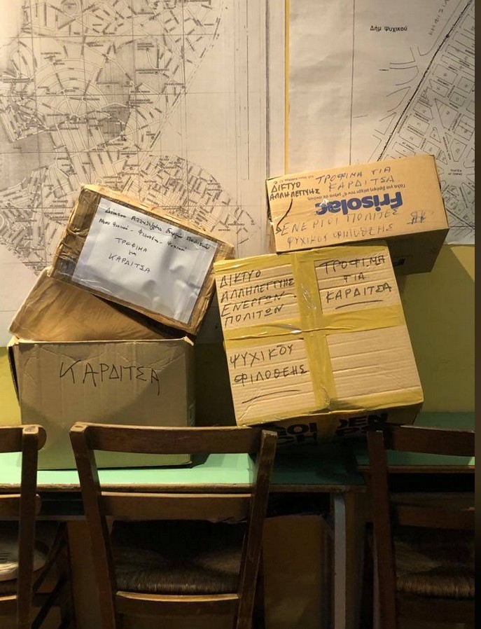 Το Δίκτυο Αλληλεγγύης Ενεργών Πολιτών Νέου Ψυχικού-Φιλοθέης-Ψυχικού συγκέντρωσε τρόφιμα για τους πληγέντες συνανθρώπους μας στην Καρδίτσα και τα παρέδωσε την Δευτέρα 19 Οκτωβρίου 2020 στο κοινωνικό παντοπωλείο Χαλανδρίου, το οποίο και θα τα μεταφέρει άμεσα στην Καρδίτσα.